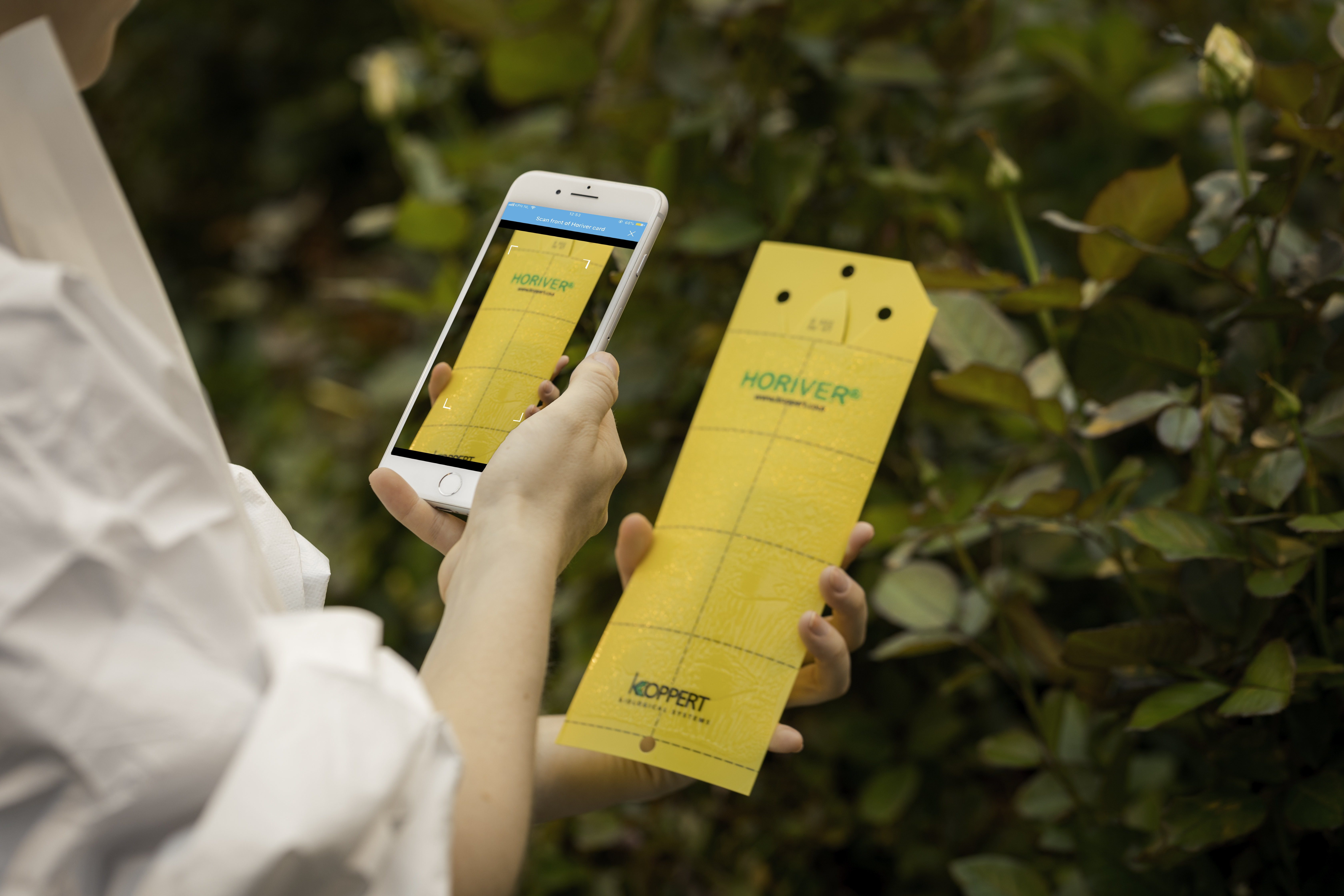 Aplikacja jest dostępna dla wszystkich upraw. Opcja skanowania lepkich tablic Horiver jest dostępna dla mączlików tylko dla użytkowników telefonów iPhone 8 i nowszych.