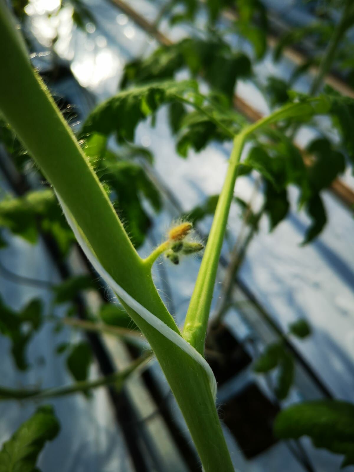 To co bardzo utrudnia sterowanie rośliną to mało aktywny klimat i niedobór światła. W przypadku długo utrzymujących się dni z radiacją poniżej 100j/cm2/dzień najlepiej, aby opóźnić stawianie roślin na otwory, szczególnie, jeżeli masa liściowa jest uboga, wierzchołek cienki i są to rośliny dwupędowe szczepione. Grono u nich jest dość nisko osadzone, za 6-7 liściem. Niestety, zbyt młoda roślina o małej powierzchni liściowej straci pierwsze grono przy niskiej radiacji. Dojdzie do zahamowania procesu generatywnego na rzecz wegetatywnego, a całe moce skierowane zostaną na tworzenie korzenia w macie. Sadzenie młodych roślin w matę może skończyć się sukcesem jedynie, jeżeli suma tygodniowej radiacji przekroczy 1400j/cm2/tydzień.