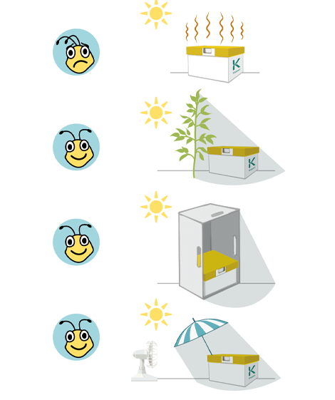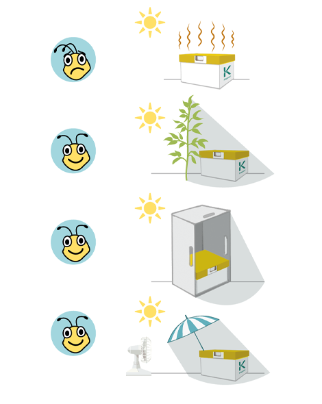 Trzmiele starają się utrzymywać stałą temperaturę wewnątrz ula. Jeśli będą przez zbyt długi czas narażone na zbyt wysoką temperaturę, może dojść do uszkodzenia ula i zamieszkującej go kolonii. W związku z tym ul z trzmielami należy umieścić w najchłodniejszym dostępnym miejscu, a z pewnością na stanowisku zacienionym, szczególnie w najcieplejszej części dnia. Z kolei podczas ciemnej zimy ważne jest, aby do ula docierało światło słoneczne. Latem cień mogą dawać same rośliny bądź można ustawić skrzynię lub inną osłonę. W okresach skrajnie wysokich temperatur konieczne będzie stosowanie aktywnych metod chłodzenia.