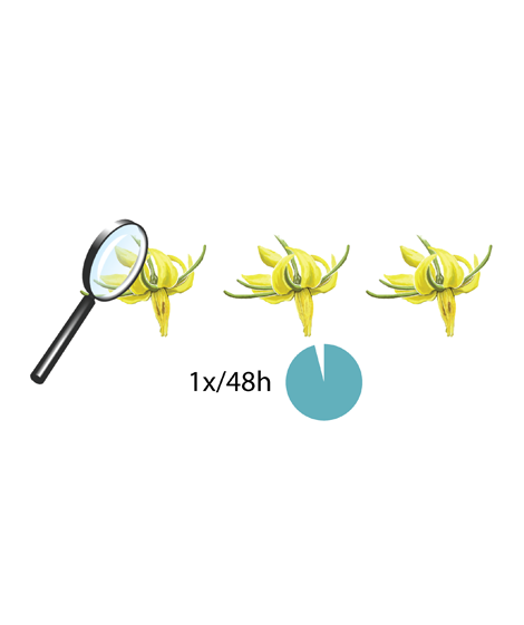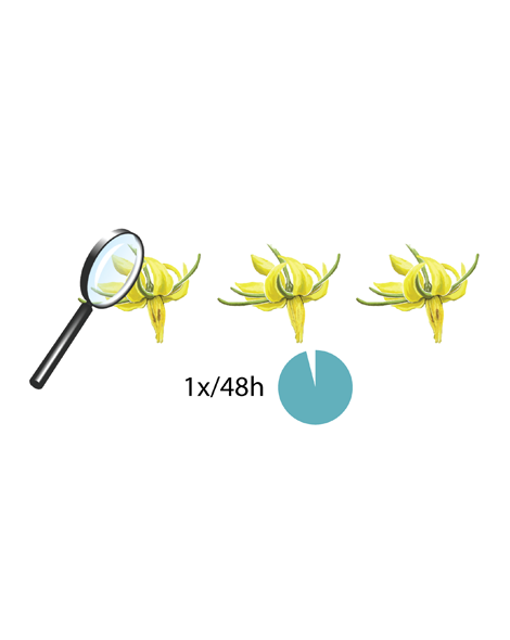 Zapylenie kwiatu musi się odbyć, zanim kwiat się zamknie. W zależności od warunków kwiat może być otwarty od jednego do trzech dni. Aby sprawdzić skuteczność zapylania, należy zebrać około 20 zamkniętych kwiatów z różnych lokalizacji. Wszystkie zamknięte kwiaty muszą nosić ślady ugryzienia. Sprawdzanie zamkniętych kwiatów pozwala uzyskać dokładny obraz sytuacji. Kwiaty otwarte przez więcej niż dobę mogą nosić od jednego do pięciu śladów ugryzienia.