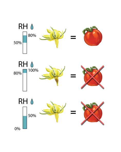 Uwalnianie pyłku jest najskuteczniejsze przy wilgotności względnej wynoszącej od 50% do 80%. Przy wilgotności względnej przekraczającej 80–85% pyłek nie będzie uwalniany, a trzmiele staną się nieaktywne. Z kolei przy wilgotności względnej poniżej 50% pyłek ma mniejszą skuteczność kiełkowania, co może powodować problemy z zawiązywaniem owoców. Trzmiele będą nadal zbierać pyłek i pozostawiać ślady ugryzień, ale owoce nie będą rosnąć.