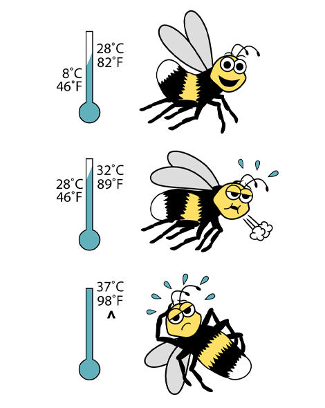 Trzmiele są aktywne przy temperaturze od 8 do 32°C. Optymalny dla ich pracy przedział temperatur wynosi od 8 do 28°C. Przy temperaturze od 28 do 32°C trzmiele stają się coraz mniej aktywne. Przy wyższych temperaturach trzmiele przestają latać. W takiej sytuacji będą się zajmować wyłącznie chłodzeniem ula, dopóki temperatura nie spadnie z powrotem poniżej 32°C.