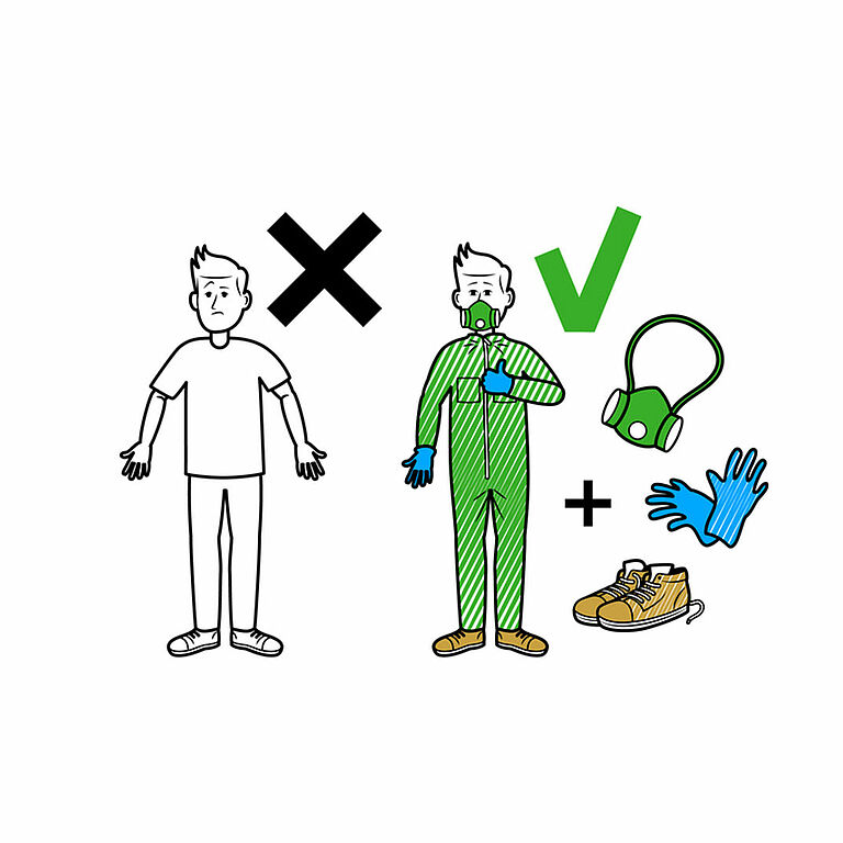 Należy zapobiegać narażeniu na działanie substancji w wyniku wdychania oraz spożycia substancji przez noszenie maski.
