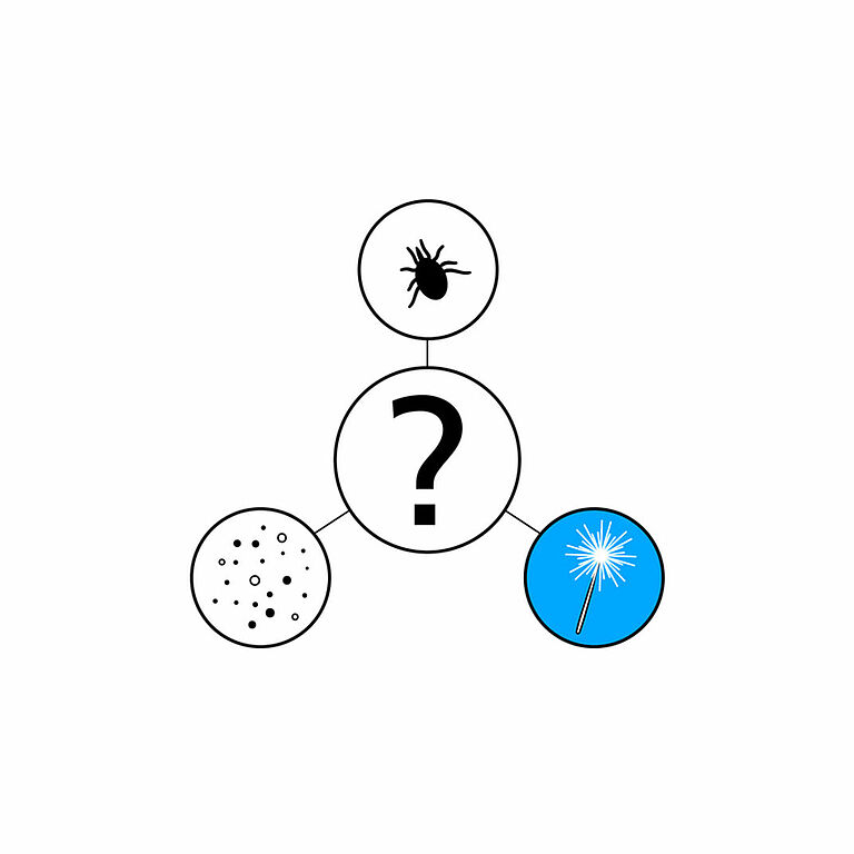 W praktyce trudno jest ocenić, które substancje powodują reakcję alergiczną. Alergie mogą być również wywołane przez inne czynniki wyzwalające lub kombinację czynników wyzwalających w otoczeniu – na przykład pyłki kwiatowe, otręby lub inne substancje lotne. Aby stwierdzić, które substancje powodują reakcje alergiczne organizmu, konieczne jest przeprowadzenie odpowiednich badań w tym kierunku.