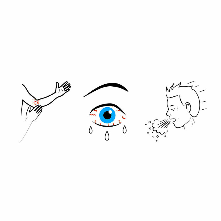 W przypadku narażenia na działanie substancji znajdujących się w naszych produktach może się okazać, że cierpisz na alergię. W wyniku tego możesz odczuwać objawy związane ze skórą – zaczerwienienie, świąd lub egzemę alergiczną, nosem – kichanie, katar lub swędzenie nosa, a także oczami – swędzenie lub łzawienie.