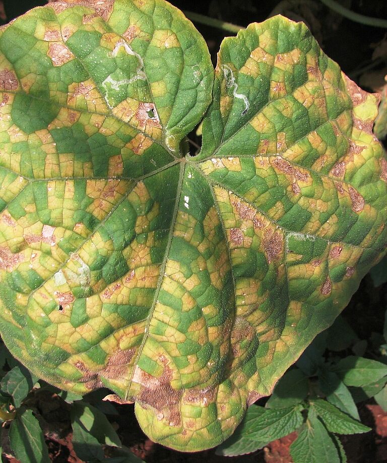 Patogeny mączniaka rzekomego porażają głównie liście, ale czasami również łodygi i owoce. Powodują uszkodzenia na górnej powierzchni liścia, ograniczone użyłkowaniem, które są najpierw żółte, a następnie brązowe. Na spodniej stronie liścia pojawia się puszysta narośl, która najpierw jest biała, a później zmienia kolor na szarobrązowy. Jest to w istocie zarodnikowanie patogenów wytłaczanych z aparatów szparkowych.