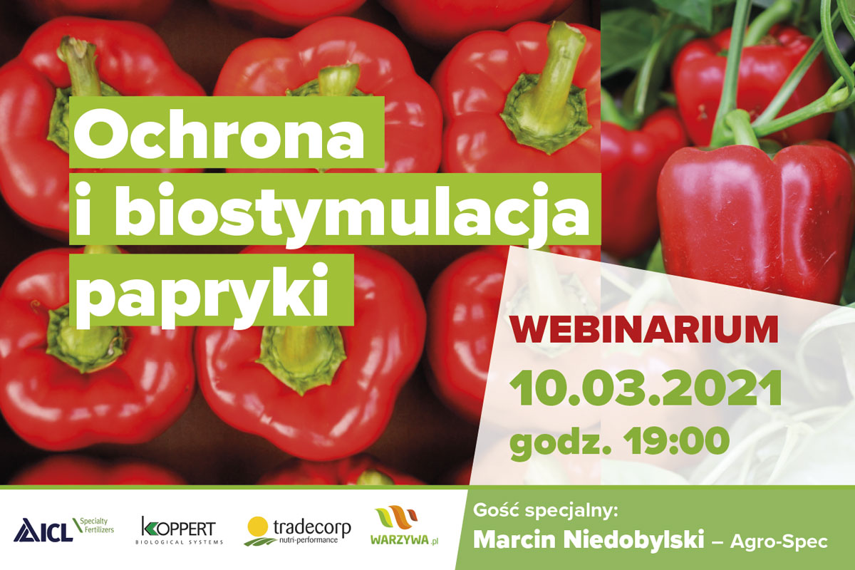 Już 10.03.2021r. o godz. 19:00 odbędzie się webinar pt. "Ochrona i biostymulacja papryki" z udziałem Koppert Polska.