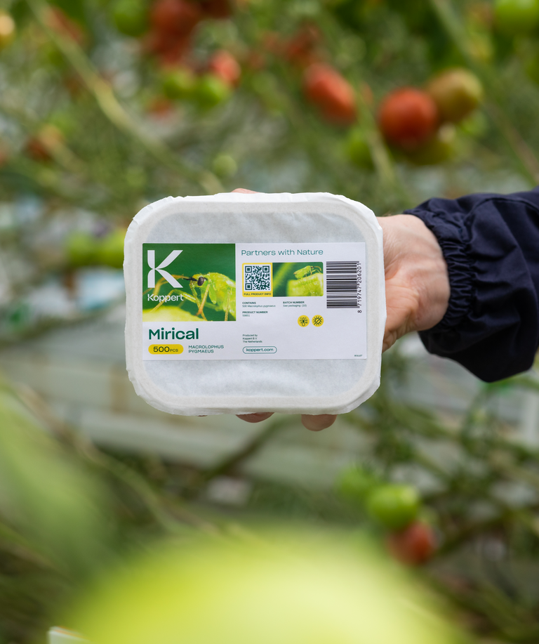Wzrost wydajności oraz jakości Mirical — biologicznego rozwiązania firmy Koppert do zwalczania mączlików w uprawach warzyw szklarniowych. Dzięki zastosowanym innowacjom, drapieżny owad Macrolophus pygmaeus (Mirical) jest silniejszy i lepiej radzi sobie z zadomowieniem się i rozwojem w uprawie: