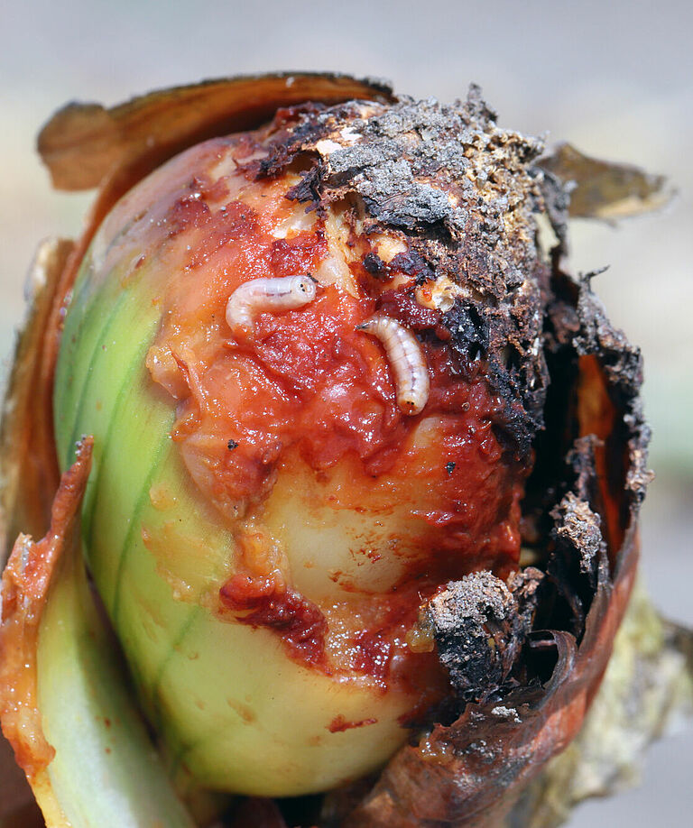 Uszkodzenia te mogą obniżyć jakość cebul i sprawić, że roślina będzie bardziej podatna na choroby i szkodniki. Poważnie uszkodzone cebulki mogą zmięknąć lub zbutwieć, przez co nie będą nadawały się do spożycia.