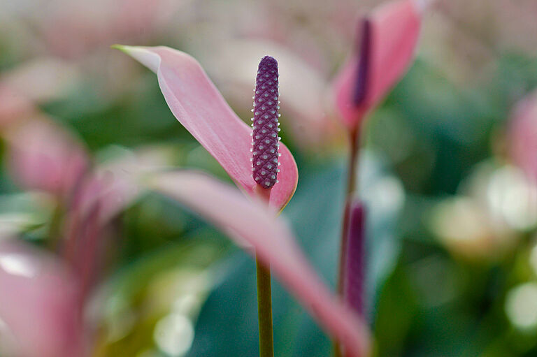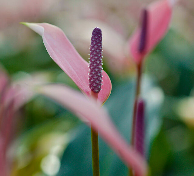 Anturium to bylina kwitnąca o pięknych, trwałych kwiatach występujących w wielu różnych kolorach. Część rośliny nazywana kwiatem jest jednak w rzeczywistości liściem tworzącym tzw. pochwę kwiatostanową, natomiast właściwe kwiaty są liczne, drobne i znajdują się na kolbie.