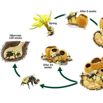 Wraz ze wzrostem temperatury i nadejściem wiosny, nowa królowa trzmieli budzi się. Zaczyna szukać pyłku i nektaru, a także odpowiedniego miejsca na gniazdo.